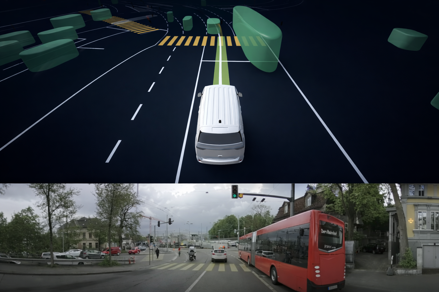 Best-in-class hardware is fully integrated into our autonomous operations stack. With full sensor redundancy, the system maintains robust perception and safe driving performance across all weather conditions – day and night.